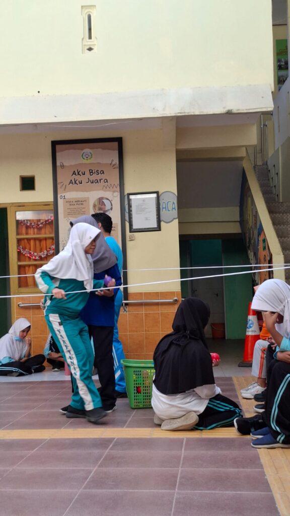 Dalam permainan ini, para siswa diuji dalam hal keseimbangan, kecepatan, dan kerja sama. Setiap peserta harus memindahkan bola dari satu titik ke titik lainnya dengan cekatan, namun tetap hati-hati agar bola tidak jatuh. Kegiatan sederhana ini menjadi momen menyenangkan sekaligus melatih fokus dan kekompakan antar siswa. Kegiatan dimulai oleh Pak Jumadi bersama siswa kelas TK yang menjadi kelompok pertama untuk mencoba permainan. Dengan penuh antusias, mereka memperlihatkan semangat dan keceriaan yang langsung menular ke seluruh peserta lain.